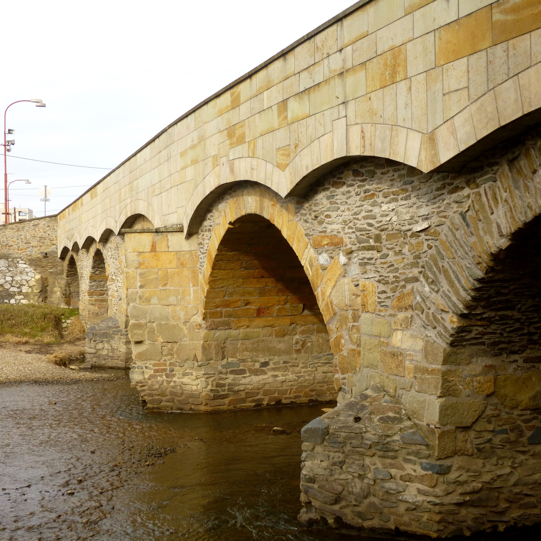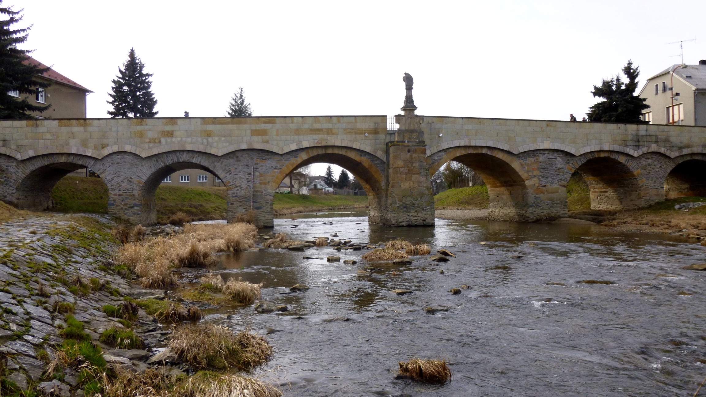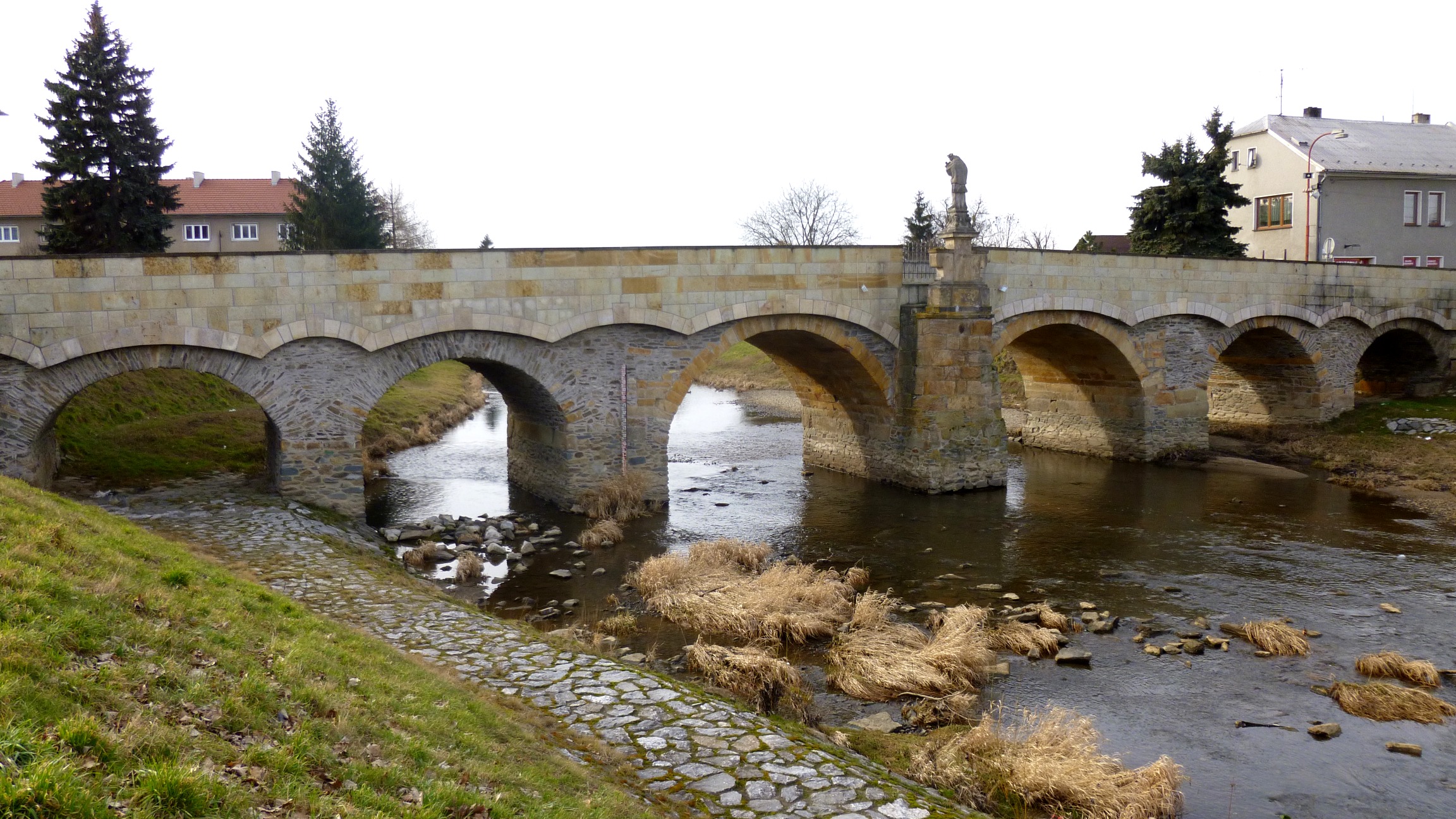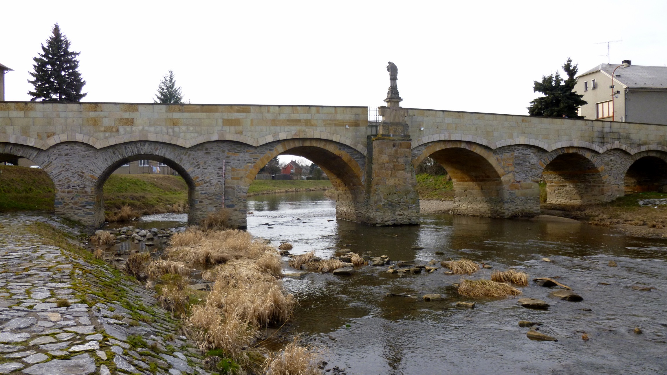Kamienny most przez jedną z odnóg rzeki Moravy podobno polecili postawić miejscy radni, aby lepiej niż poprzedni drewniany opierał się częstym powodziom. Powódź uszkodziła most również w 1997 roku, gdy już niemal pół wieku zaliczał się do zabytków kultury. Staranna rekonstrukcja w 1999 roku przywróciła mostowi jego pierwotne piękno. Nawierzchnia mostu została poszerzona i wybrukowana, a niezbyt piękną żelazną barierkę zastąpiono szlachetną, kamienną balustradą.