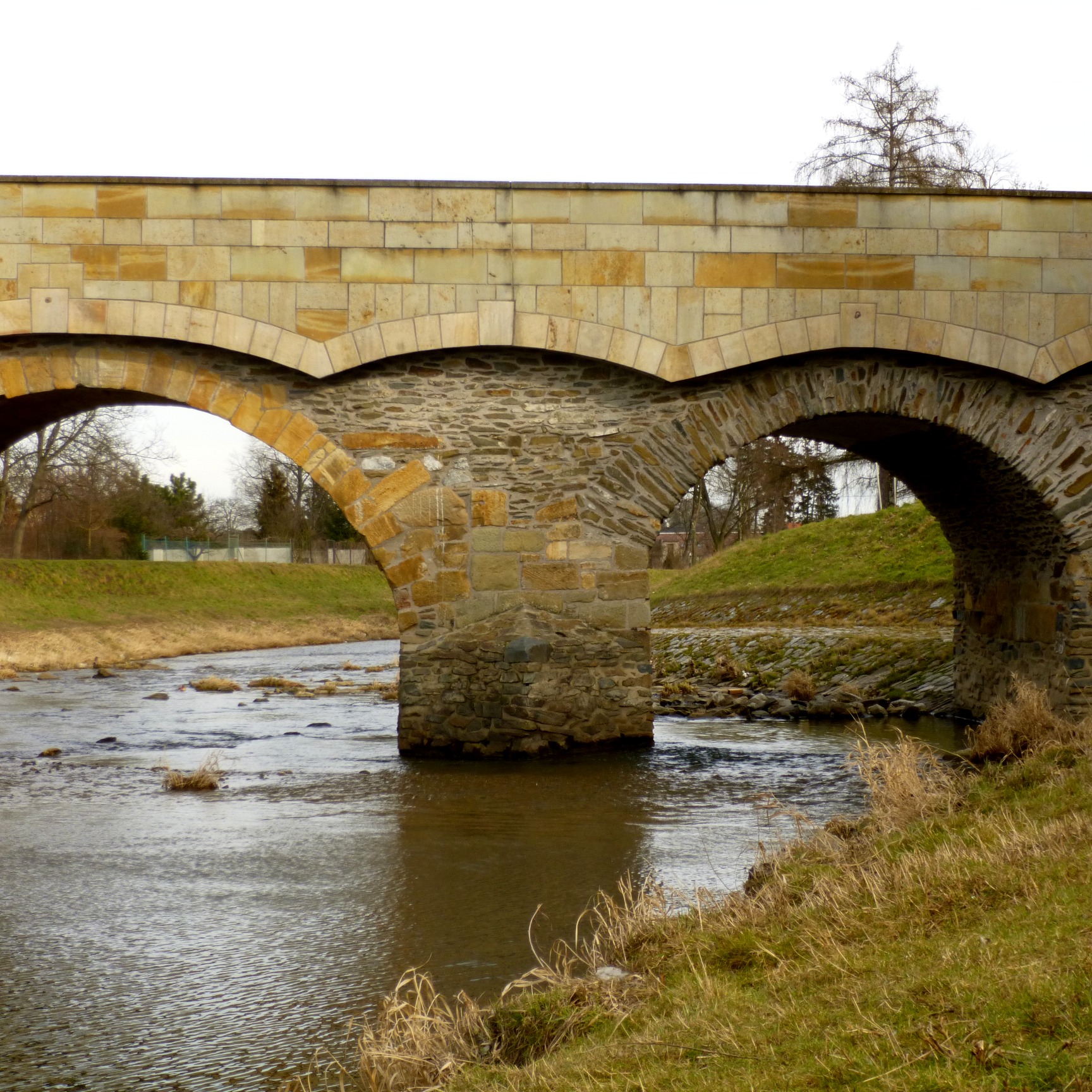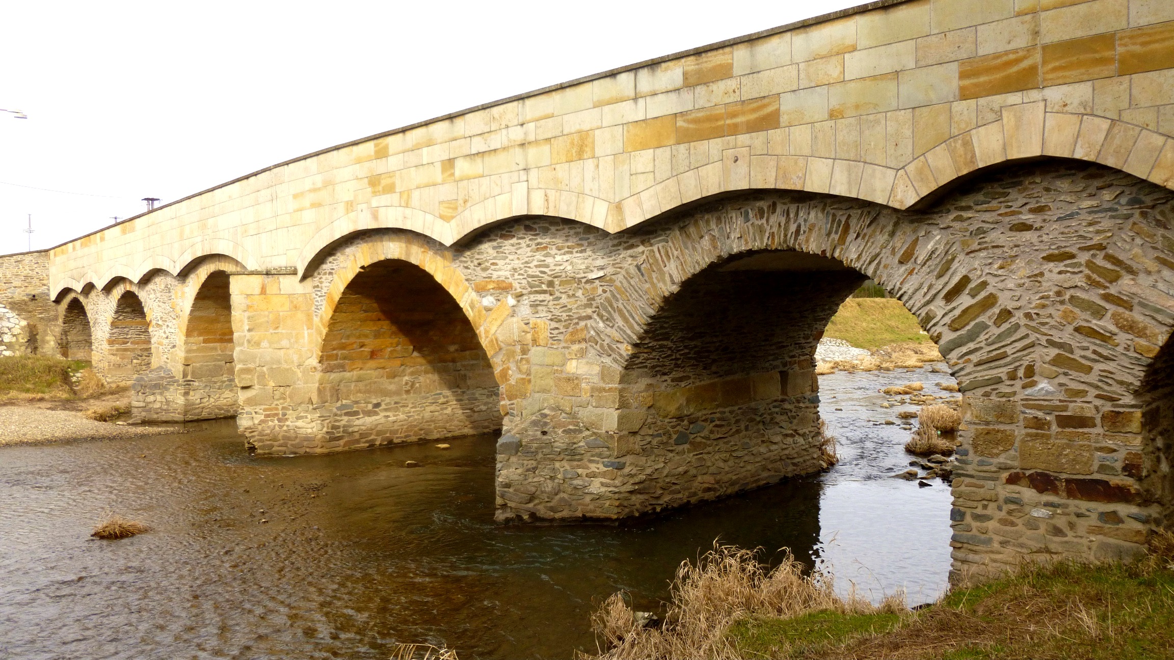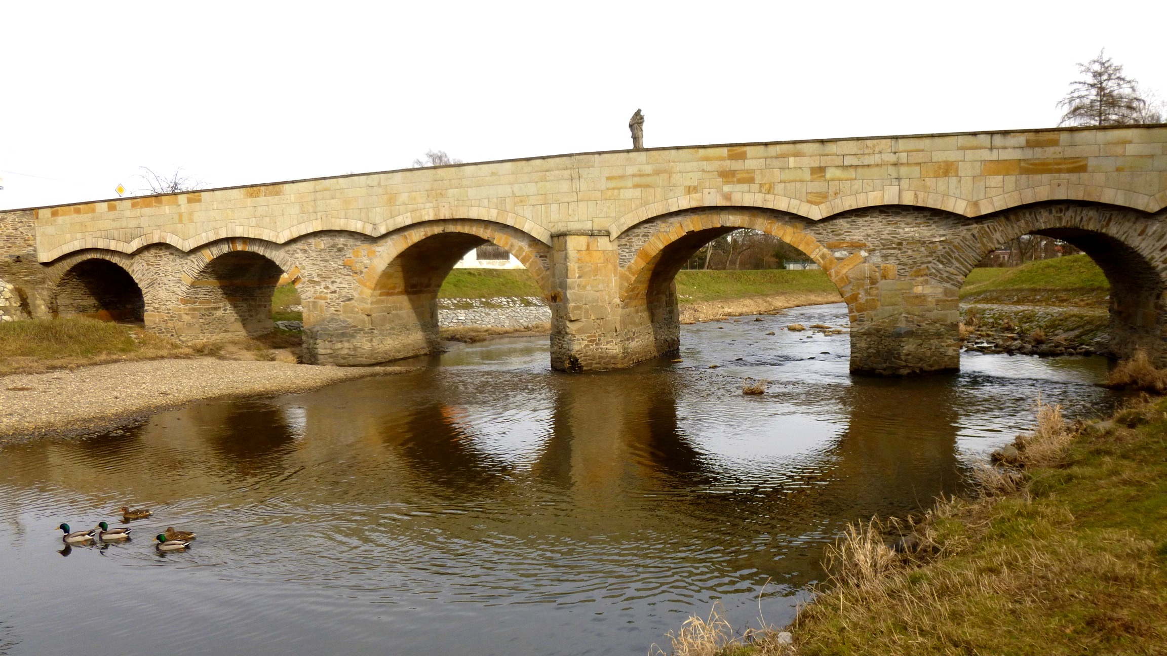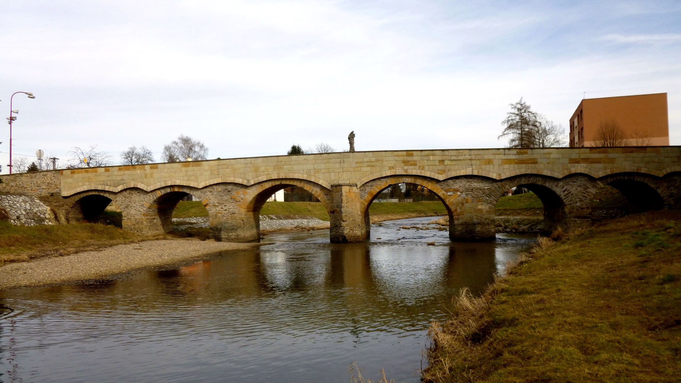 Kamienny most przez jedną z odnóg rzeki Moravy podobno polecili postawić miejscy radni, aby lepiej niż poprzedni drewniany opierał się częstym powodziom. Powódź uszkodziła most również w 1997 roku, gdy już niemal pół wieku zaliczał się do zabytków kultury. Staranna rekonstrukcja w 1999 roku przywróciła mostowi jego pierwotne piękno. Nawierzchnia mostu została poszerzona i wybrukowana, a niezbyt piękną żelazną barierkę zastąpiono szlachetną, kamienną balustradą.