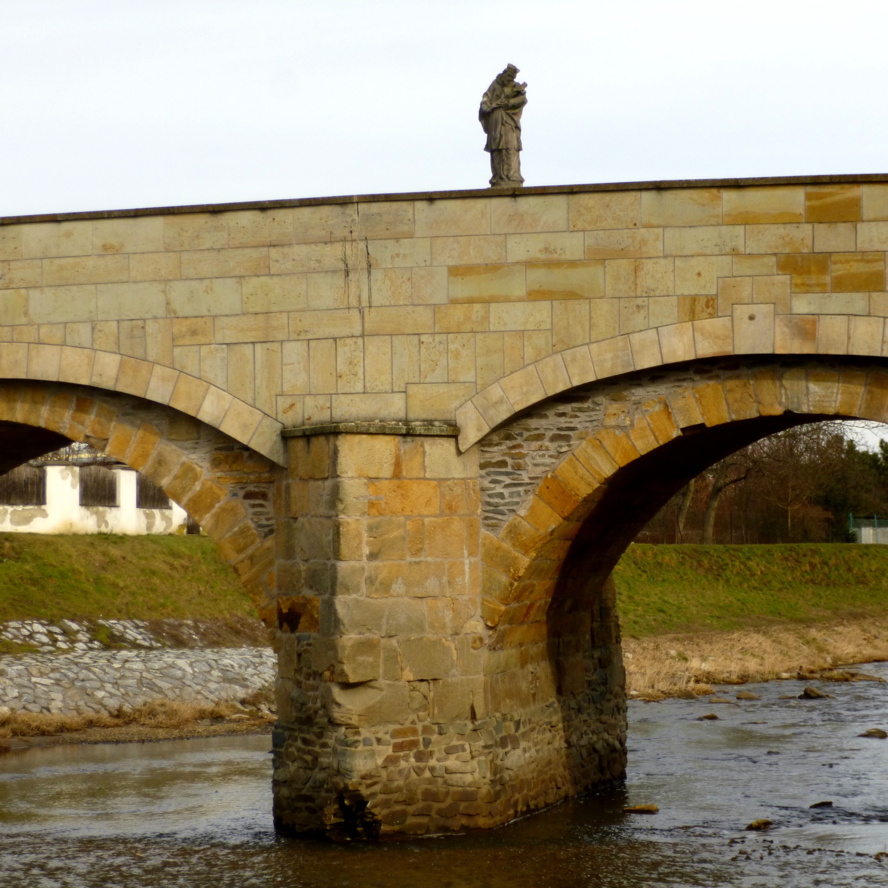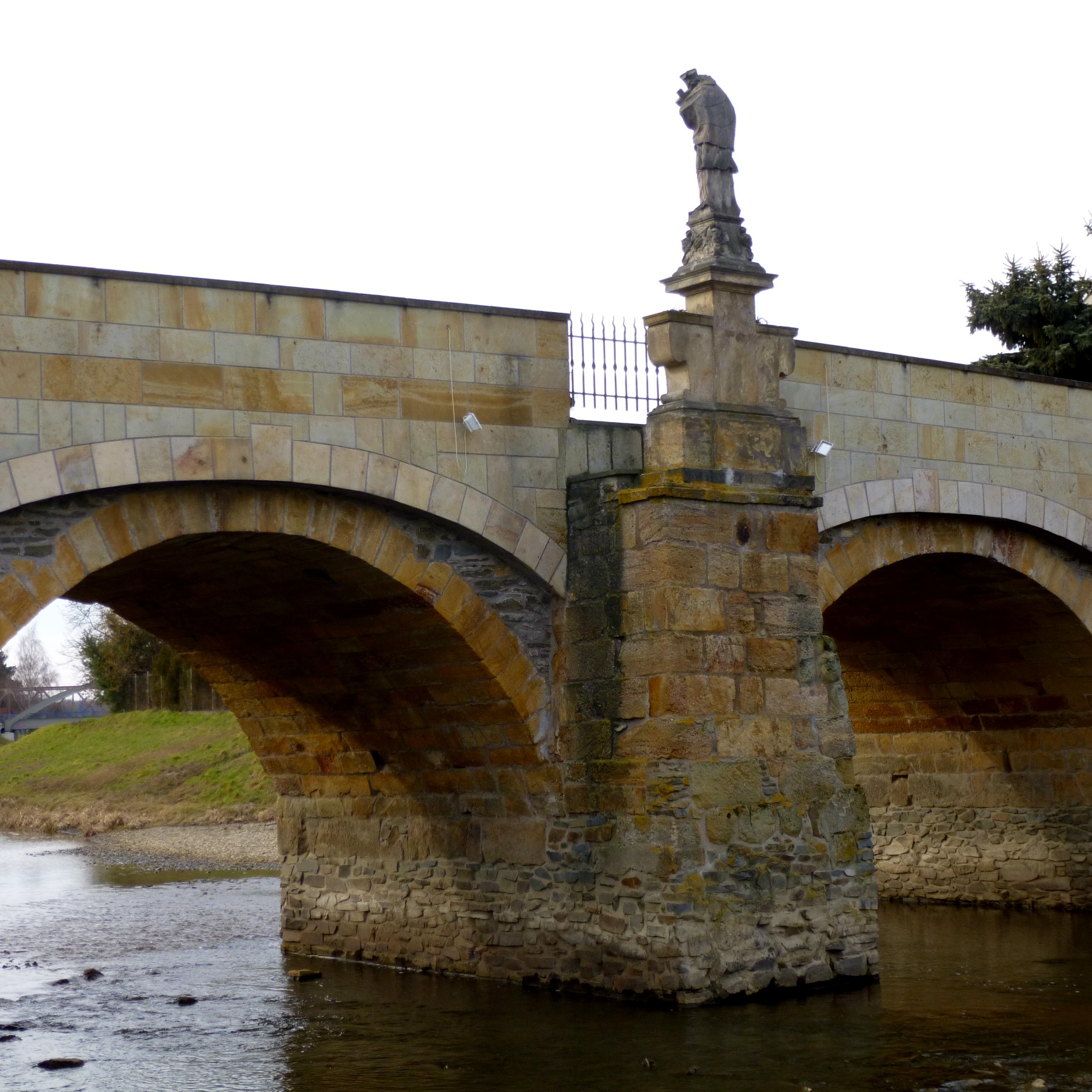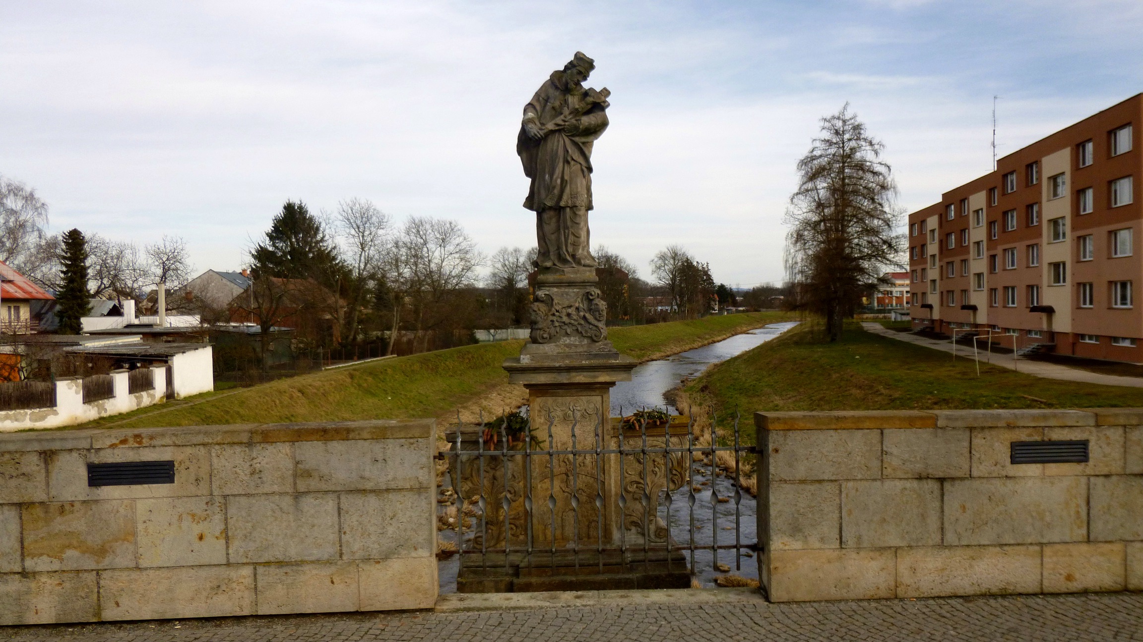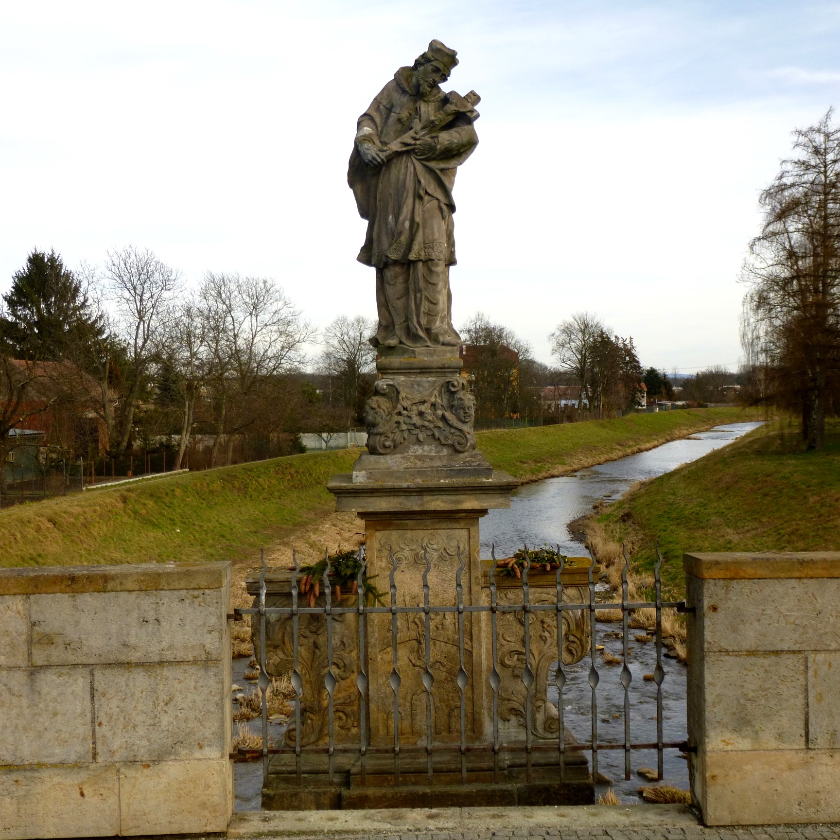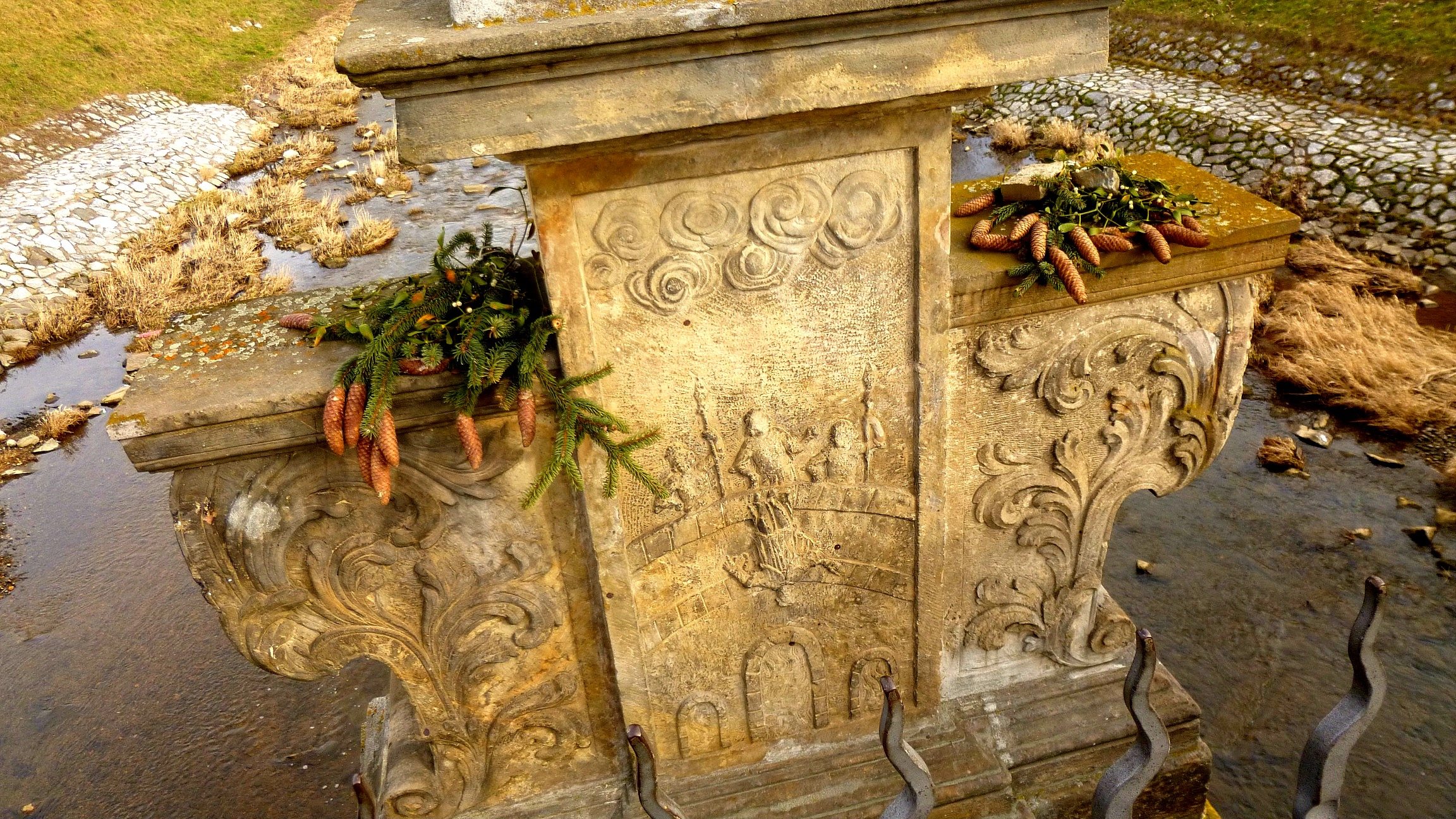 Na cokole figury św. Jana Nepomucena warto zwrócić uwagę na relief przedstawiający wrzucenie tego świętego do Wełtawy, jest na nim bowiem uwieczniony praski Most Karola. W ten sposób najstarszy most na Morawach ma w sobie obraz najstarszego mostu w Czechach.